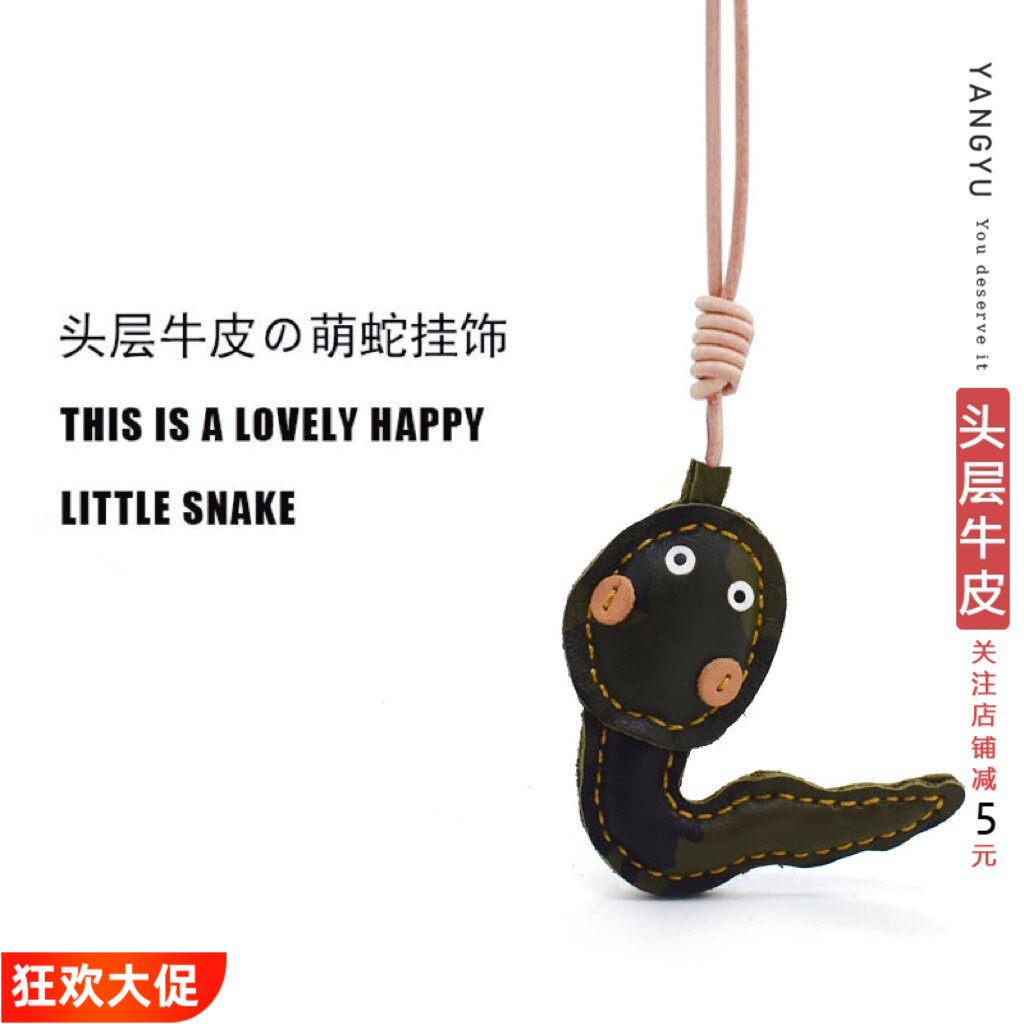 真皮小蛇~北欧头层牛皮包挂件钥匙扣生肖皮绳饰品手账本书签礼物