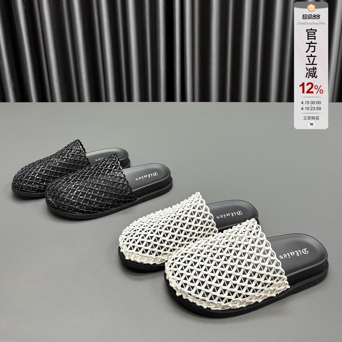 真皮包头拖鞋女2026夏季新款编织镂空厚底薄款透气牛皮外穿凉拖鞋