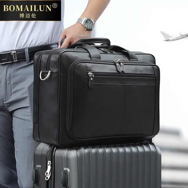 博迈伦品牌公文包男士手提包真皮商务通勤17英寸电脑包大容量出差旅行包 黑色 头层纳帕牛皮 长宽高:43*15*30.5cm