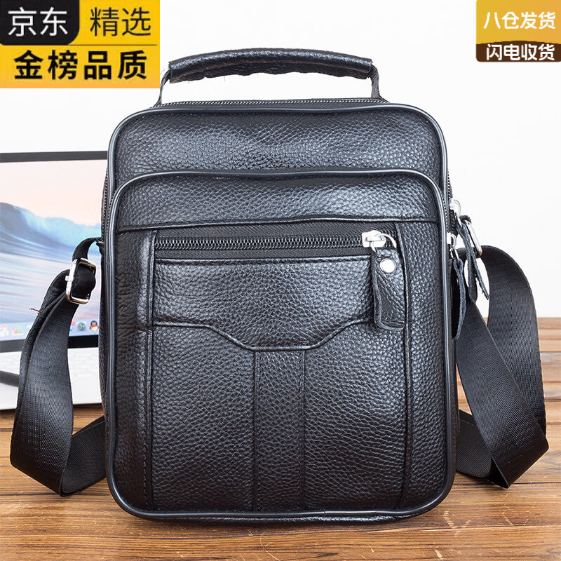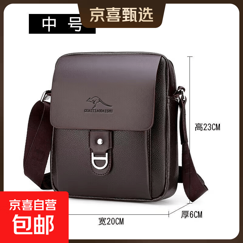 袋鼠新款男包男士商务包休闲背包男士外出手提包中老年背包男士斜挎包 黑色27*22*9jd