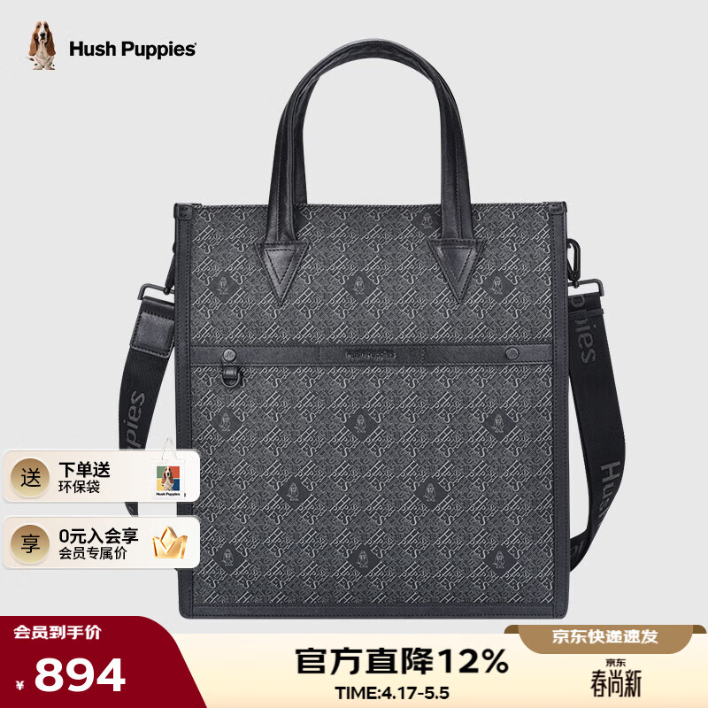 暇步士(Hush Puppies)男士公文包时尚印花pvc竖款简约商务手提包大容量便携通勤旅行包 【明星同款】HA-1311074W-571 大包可容纳笔记本14英寸
