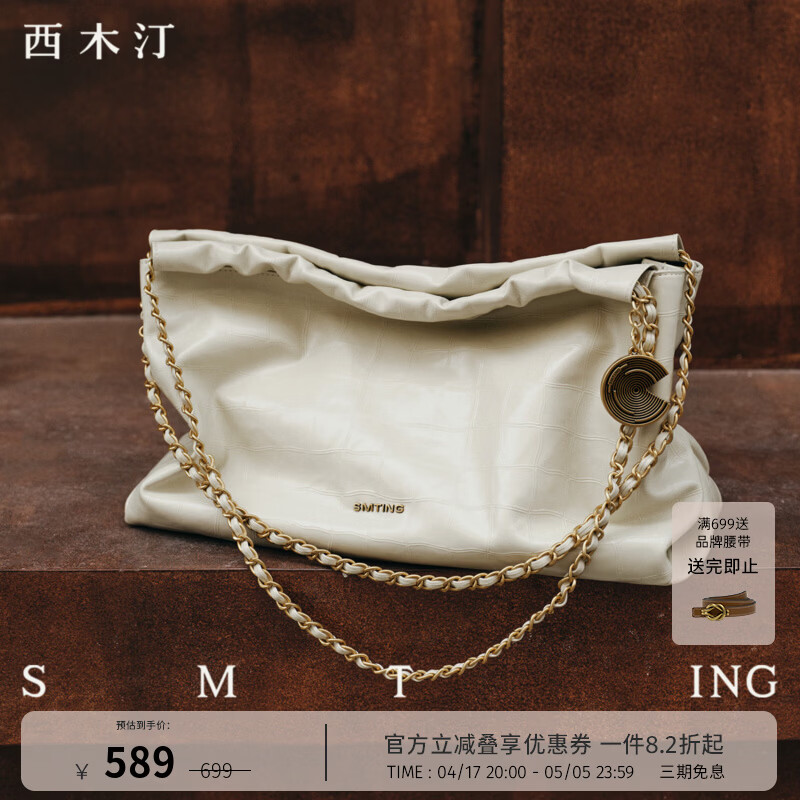 西木汀 程梓同款 悠途 头层牛皮包包新款女托特包小个子大容量链条包包 奶白色