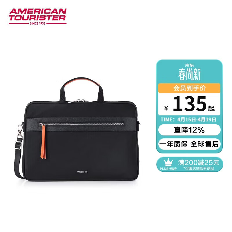 美旅男士公文包时尚轻商务电脑包简约大容量14英寸手提包QV5 黑色