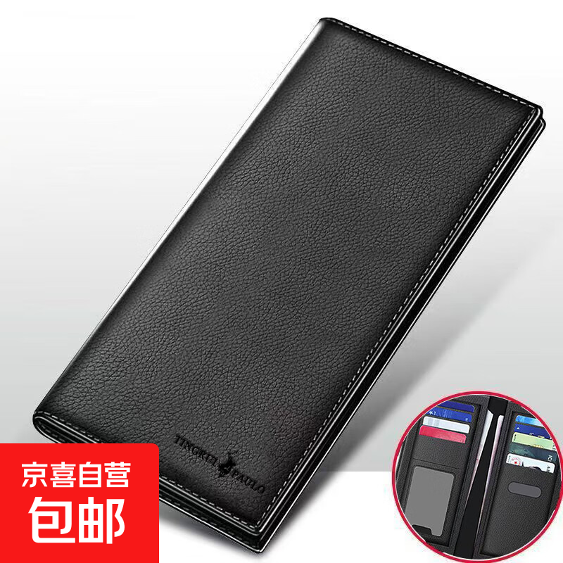 新款男士钱包男长款皮夹子软皮男款大容量皮包超薄多功能青年手包 黑色压印