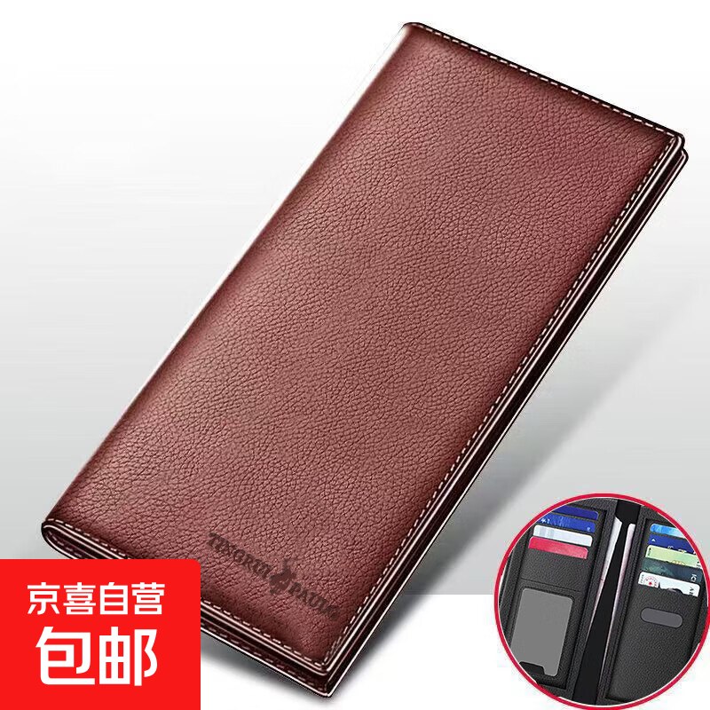 新款男士钱包男长款皮夹子软皮男款大容量皮包超薄多功能青年手包 咖色压印