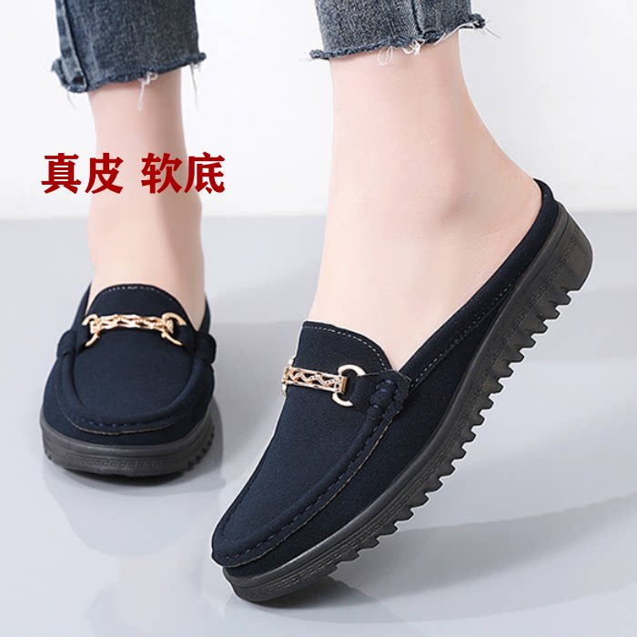 2026夏季真皮包头半拖鞋女鞋软底舒适防滑金属扣懒人鞋外穿凉拖鞋