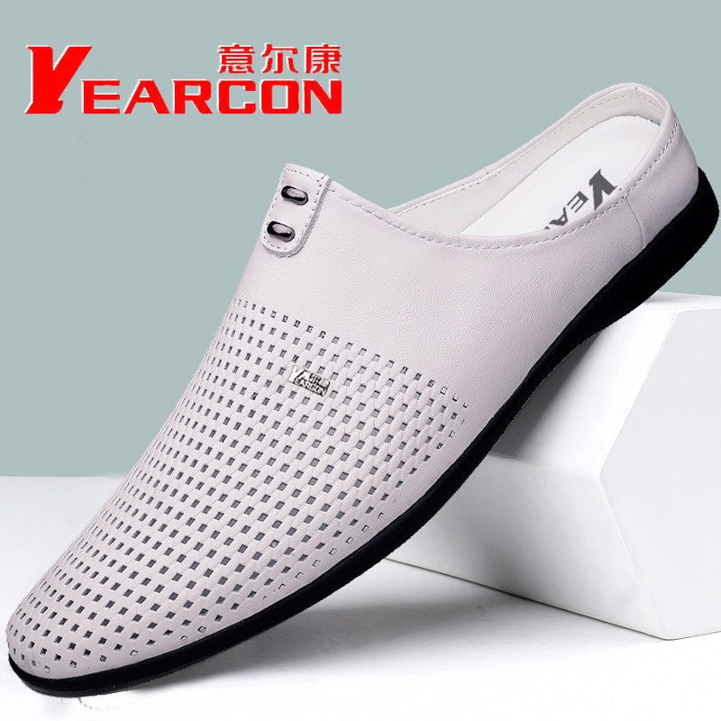 意尔康凉鞋男士夏季透气镂空洞洞鞋真皮包头凉拖鞋无后跟懒人鞋