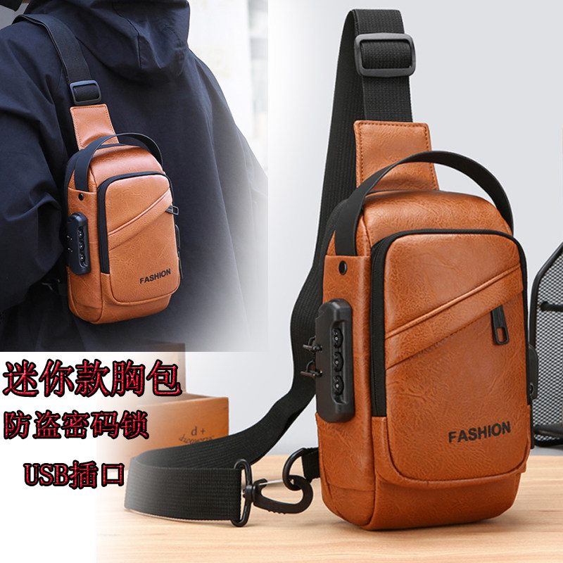 男士皮包迷你款胸包男韩版百搭旅游胸前小挎包手机包防盗密码小包