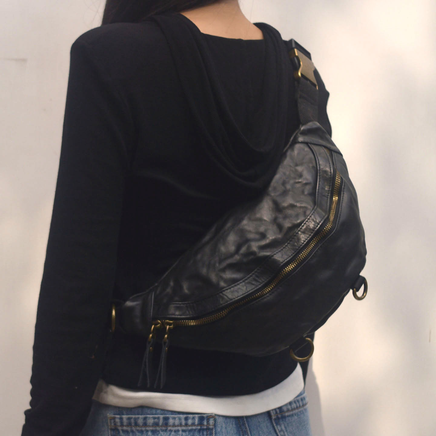复古包腰包手工皮包头层牛皮斜挎包男女真皮胸包腋下包时尚街头包