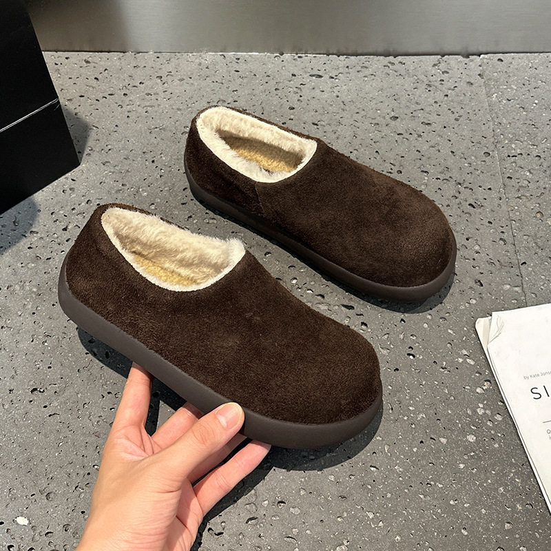 真皮包头勃肯鞋女2025年新款秋冬加绒一脚蹬保暖毛毛鞋小土豆棉鞋