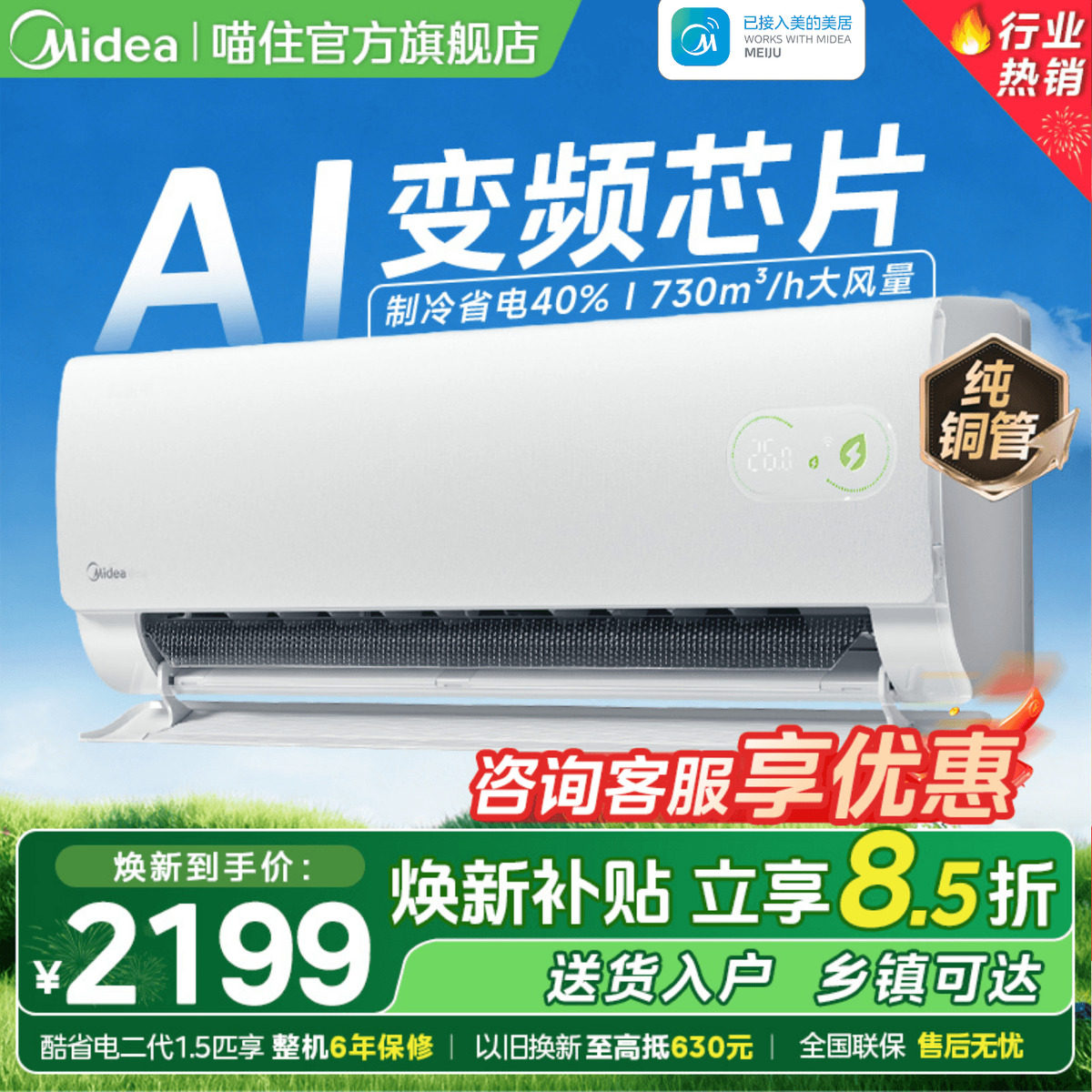 美的(Midea)空调大1.5匹挂机酷省电二代Pro新一级能效变频节能冷暖两用壁挂式卧室空调防直吹低噪WiFi智控补贴 酷省电二代 大1.5匹 海思AI变频芯片 冷热都省电