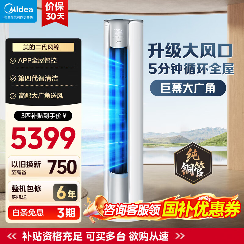 美的(Midea)空调柜机 风锦二代 3匹新一级全直流变频制冷热加大出风口圆柱立式客厅控温升级款 大3匹 一级能效【人气之选】风锦Ⅱ