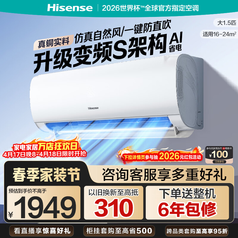 海信空调大薄荷2.0智慧风E5Pro大1.5匹挂机家用一级能效双排铜管