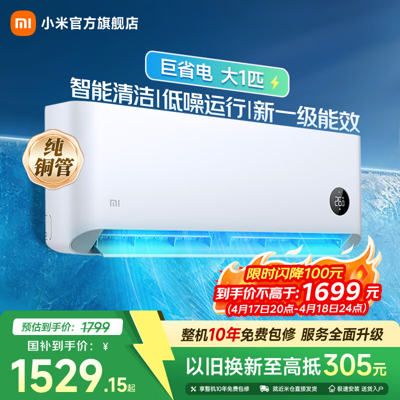 小米巨省电空调挂机冷暖两用1.5匹一级能效变频家用壁挂式