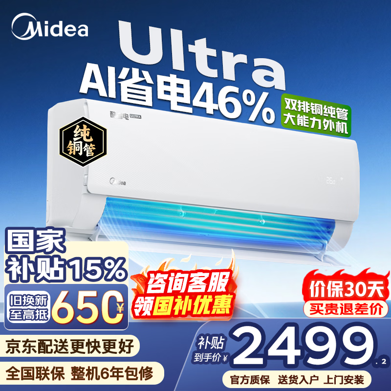 美的(Midea)空调挂机大1.5匹 酷省电二代Pro 店长推荐 双排铜管一级能效变频冷暖家用空调 以旧换新 国家补贴 酷省电Ultra 大1.5匹 一级能效