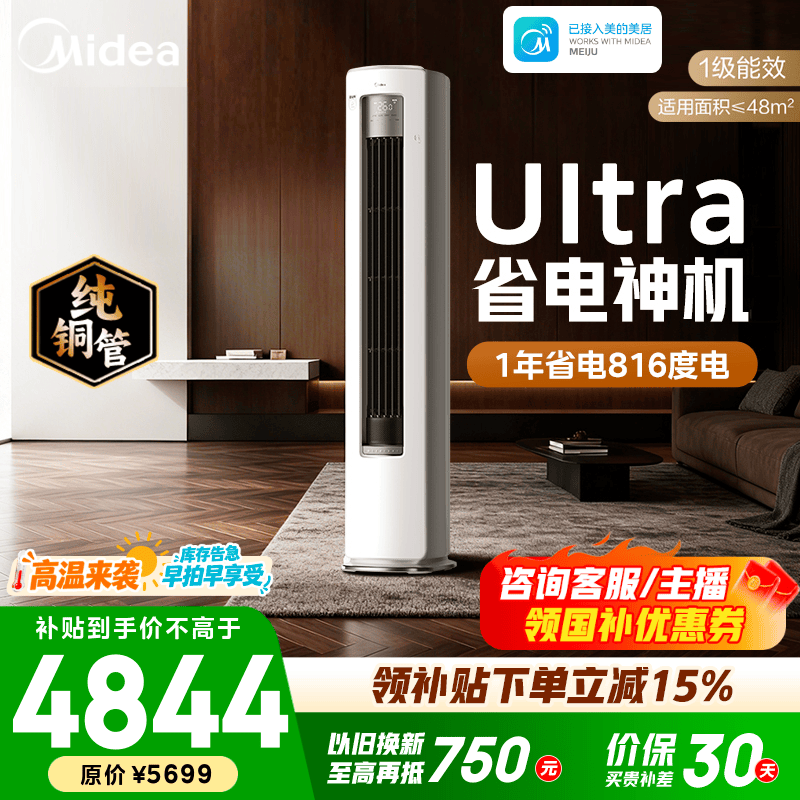 美的空调柜机 2匹/3匹 酷省电Ultra 超一级能效变频冷暖 AI省电技术 客厅立式柜机 国家补贴 以旧换新 酷省电Ultra 3匹 超一级能效 1年省电816度