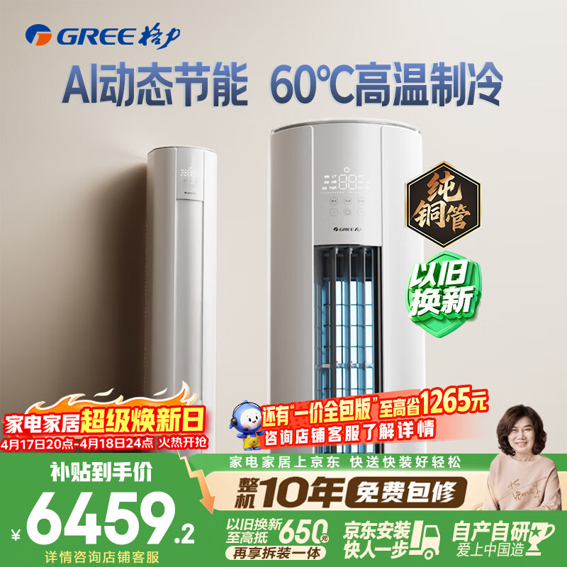 格力空调 云佳Pro 3匹 新一级能效变频 AI省电冷酷外机纯铜管客厅空调柜机 国家补贴 KFR-72LW/NhMa1BG