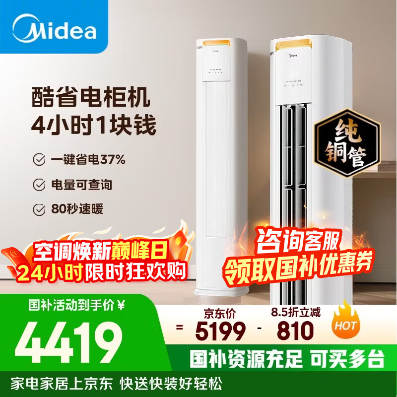 美的(Midea)空调酷省电升级3匹 新一级能效 节能省电变频冷暖低噪 客厅立式空调柜机 以旧换新 美的空调旗舰店 酷省电Pro 大3匹 4小时1块钱 省电37%