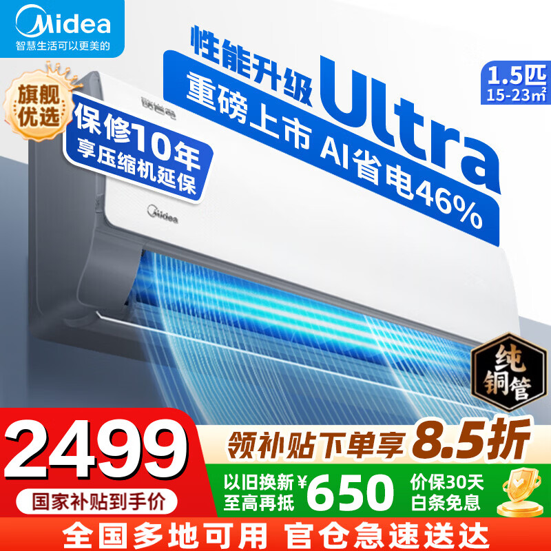 美的(Midea)【国家补贴】空调挂机 大1.5匹 酷省电2025版 新一级能效 变频冷暖除湿 家电卧室壁挂式 以旧换新 酷省电Ultra 大1.5匹 冷暖 一级能效 高配
