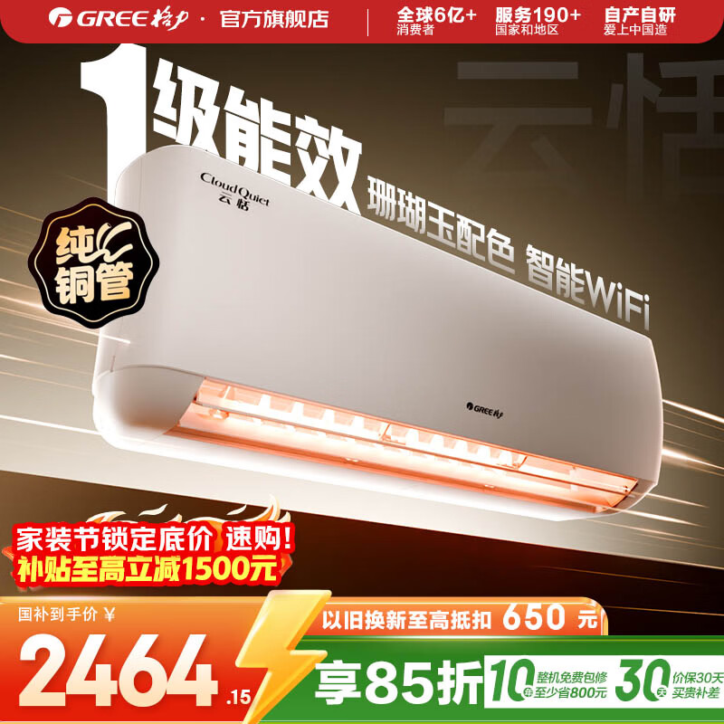 格力(GREE)空调 新一级能效 云佳升级款 变频冷暖 高温自清洁 智能WIFI 壁挂式挂机 家电国家补贴 以旧换新 云恬 新一级能效 1.5匹