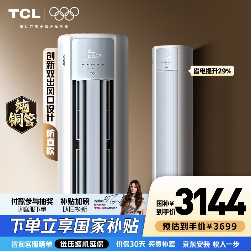 TCL空调柜机 新一级能效 真省电柜机 节能省电空调冷暖 客厅立式空调 双出风口空调 2匹 一级能效真省电柜机
