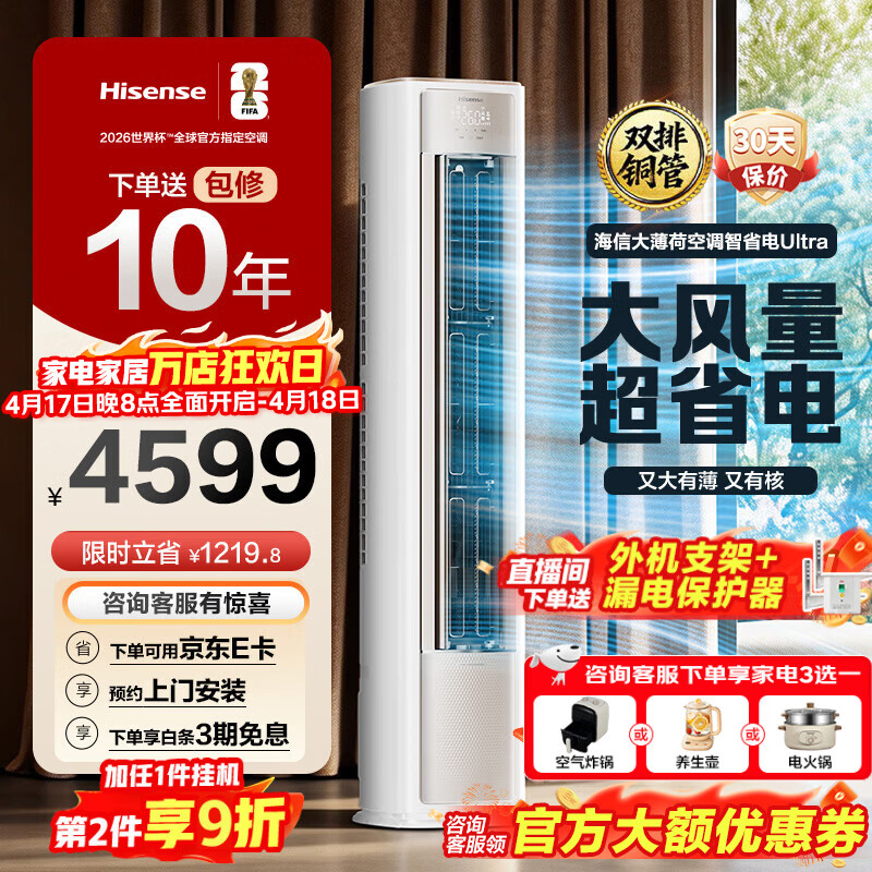 海信(Hisense)大薄荷空调 智省电Ultra大3匹 AI省电 速冷热超大风量 新一级能效 立式空调柜机 国家补贴 大3匹一级能效72LW/E370Pro-X1