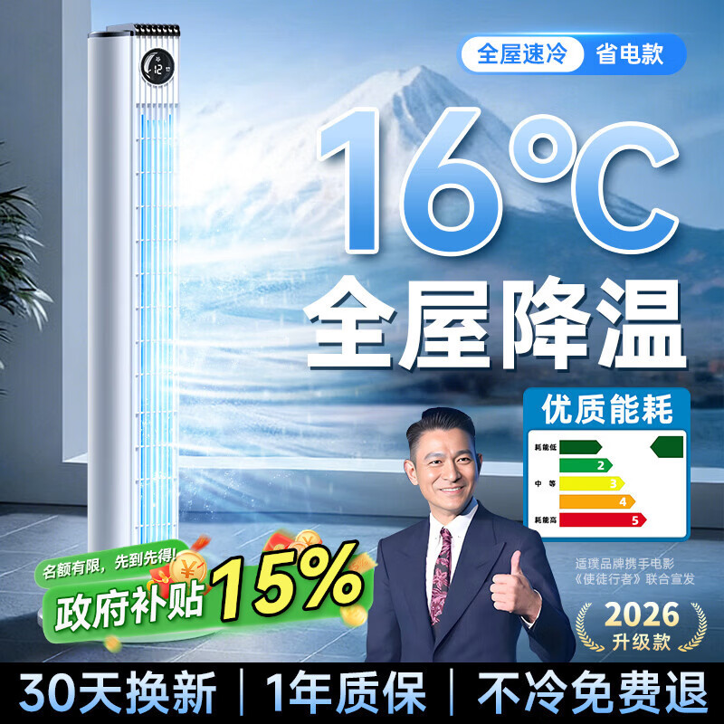 适璞【2026新款丨强力制冷】空调扇冷风机塔扇无叶电风扇超静音一级能效家用无落地冷气机厨房卧室 【升级款70cm】50㎡循环丨强力制冷丨静音节能 【16℃空调级冷风】300㎡冷循环|一级静音节能