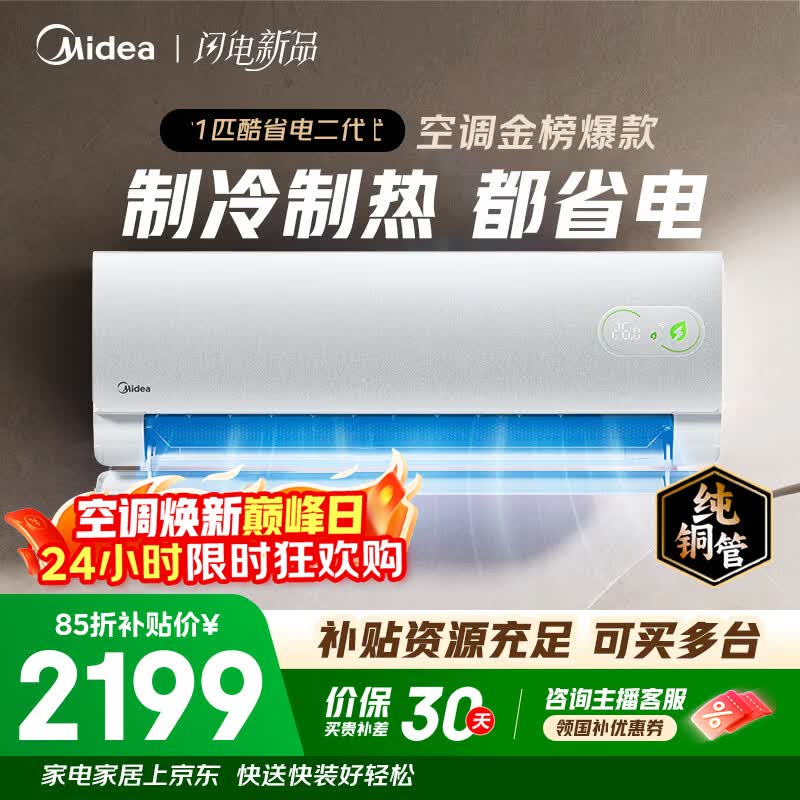 美的(Midea)空调1匹/1.5匹挂机 酷省电二代系列变频冷暖 新一级能效节能省电 以旧换新国家补贴 空调旗舰店 酷省电 大1.5匹 酷省电二代 海思芯片