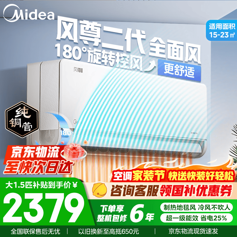 美的空调挂机 空界/风尊二代全面风新一级能效 变频冷暖 APP智控壁挂式独立除湿 以旧换新空调 大1.5匹 35MXC1 II 地毯式制暖