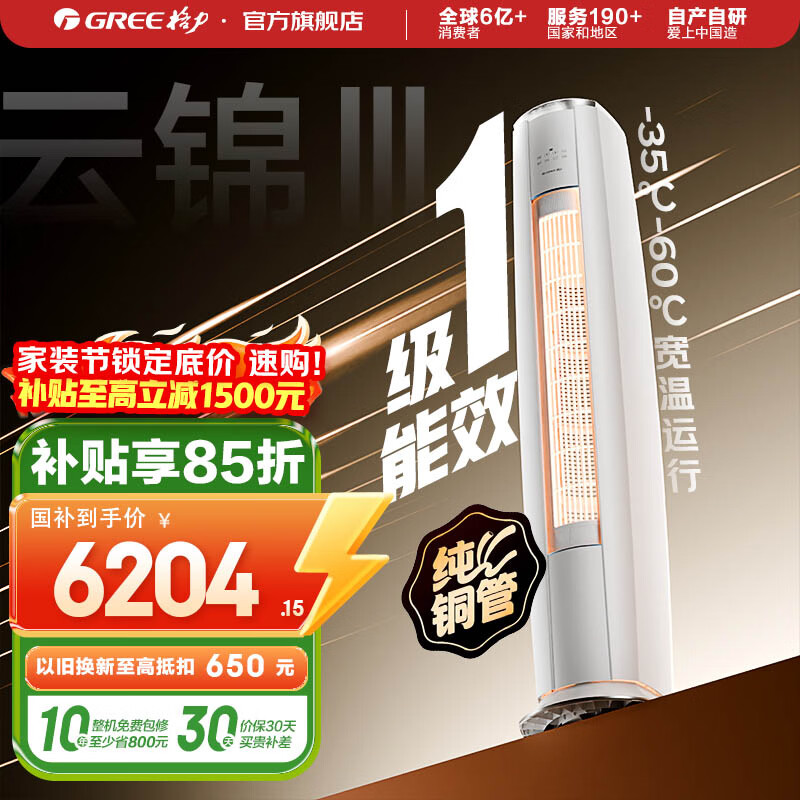格力空调 3匹 云锦三代 国家补贴 变频冷暖 高温自清洁 智能WiFi 客厅立式空调柜机 以旧换新 云锦III 新一级能效 3匹 第二代冷酷外机