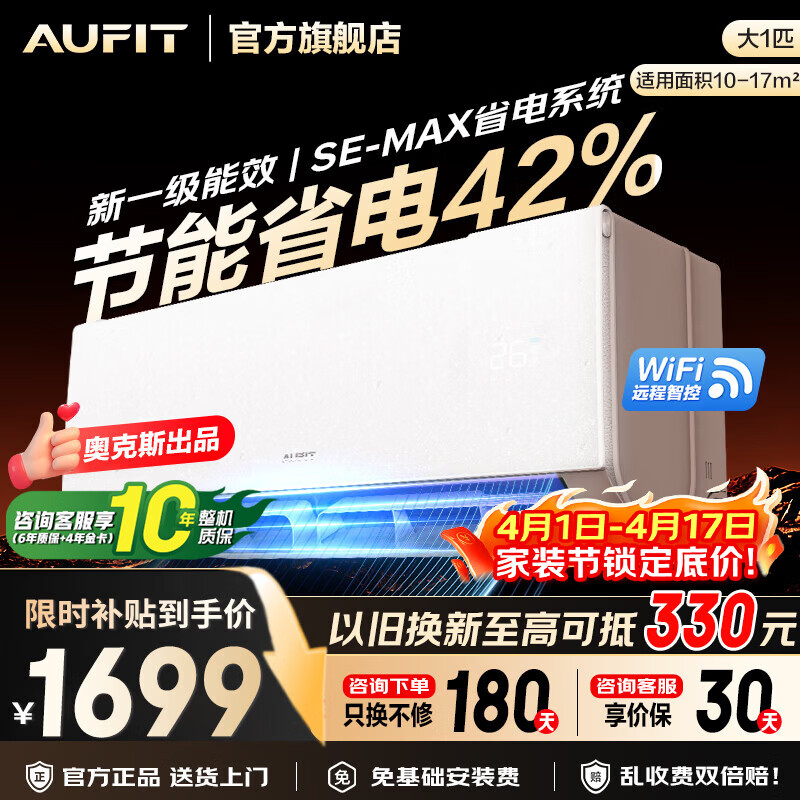 AUFIT空调奥克斯(AUX) 出品挂机1.5匹国家补贴15%新一级能效变频冷暖家用卧室壁挂式大风量除菌以旧换新 大1匹 一级能效省电防直吹自清洁【手机智控款】