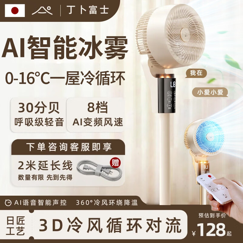 丁卜富士【AI语音冰雾降温丨全屋16℃】空调扇制冷风扇卧室超静音一级能效电风扇落地式塔扇家用空气循环扇 【旗舰机械】抗菌氛围灯丨全屋香薰制冷循环丨空调飓风 日本爆款丨秒降温丨10-300平适用