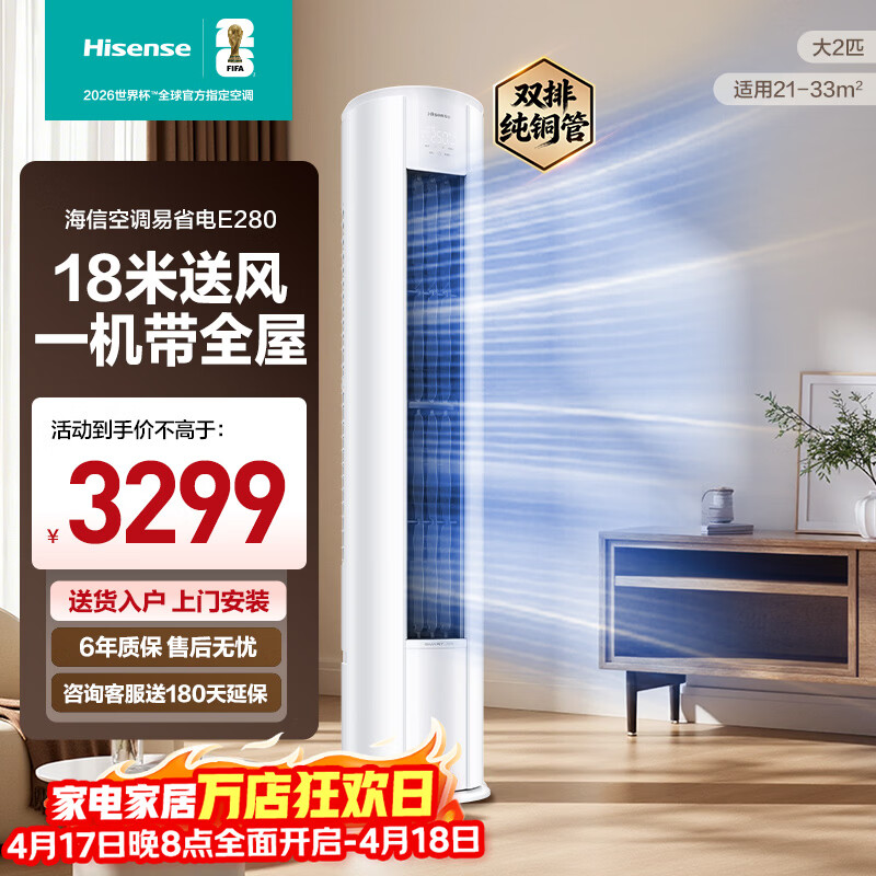 海信(Hisense)空调 大2匹 易省电E280 AI省电 速冷热大风量 新一级能效 国家补贴15% 以旧换新客厅立式空调柜机 KFR-50LW/E280-X1