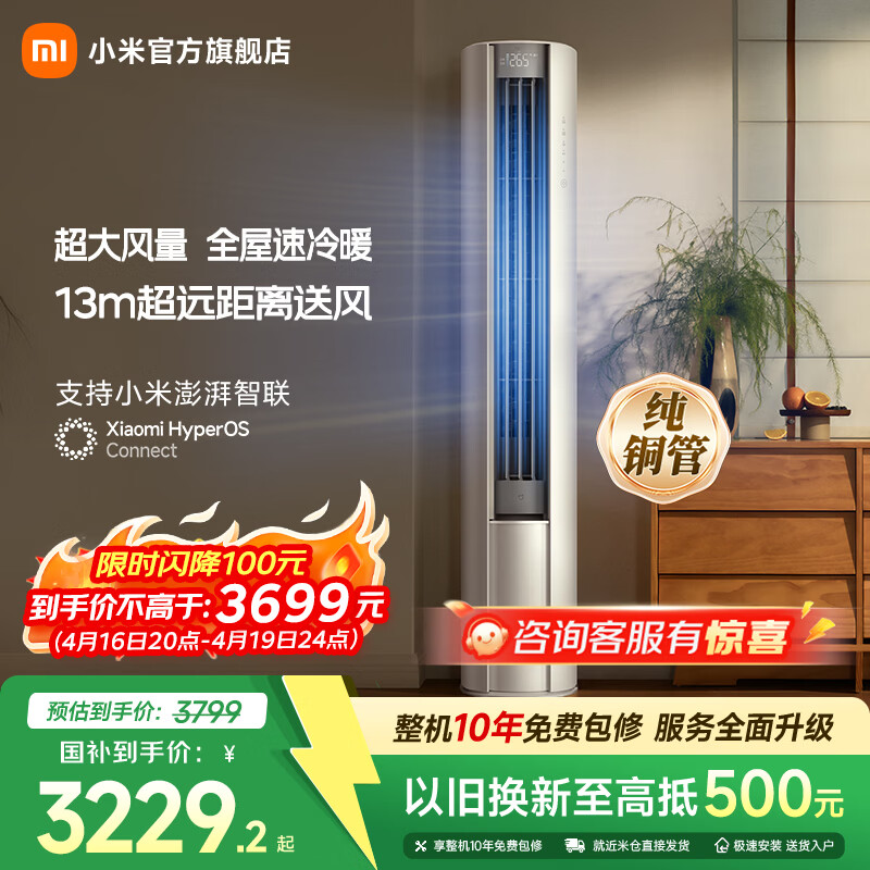 小米(MI)米家2匹 空调 巨省电大风口 立式圆柱客厅空调 新一级能效 51LW-NA10/N1A1(W) 国家补贴 巨省电 立式空调 2匹 13m超远距离送风