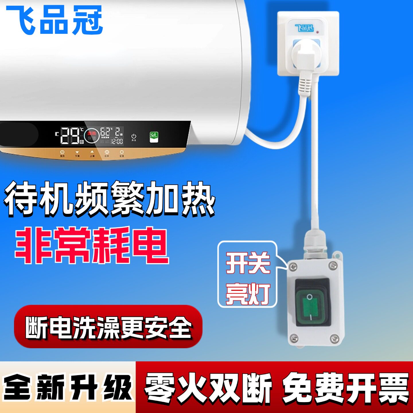 16A热水器插座电源延长线防水开关空调插座家用10A单插头带开关