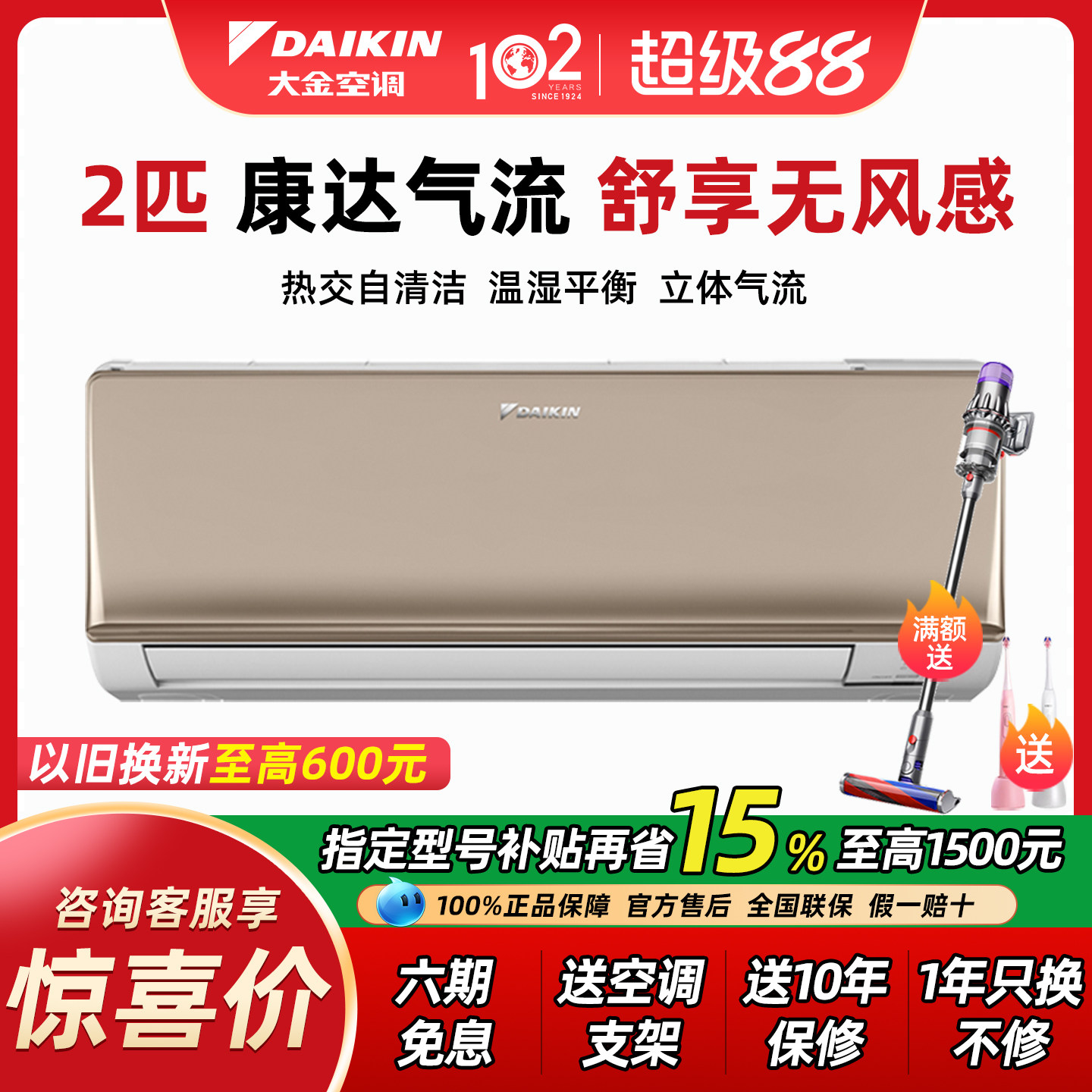 大金空调官方旗舰店衡境挂机新一级1.5匹变频冷暖E135国补减15%