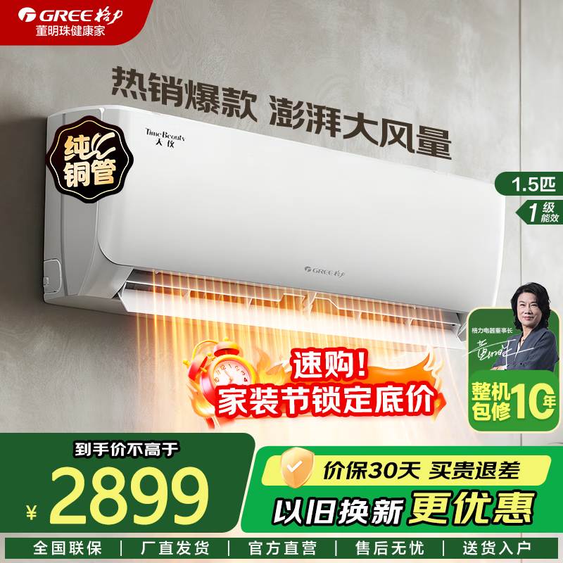 格力(GREE)空调 1.5匹 天仪 新一级能效 省电 变频冷暖自清洁 官方正品 大1匹 家用卧室挂机 家电以旧换新 天仪 1.5匹 一级能效【热销爆款】