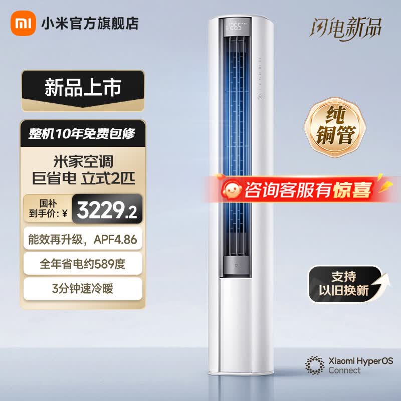 小米立式空调 巨省电 新一级变频冷暖客厅温湿双控智能柜机节能空调大广角超远距送风 国家补贴 巨省电 2026款 大2匹 115°大广角风域