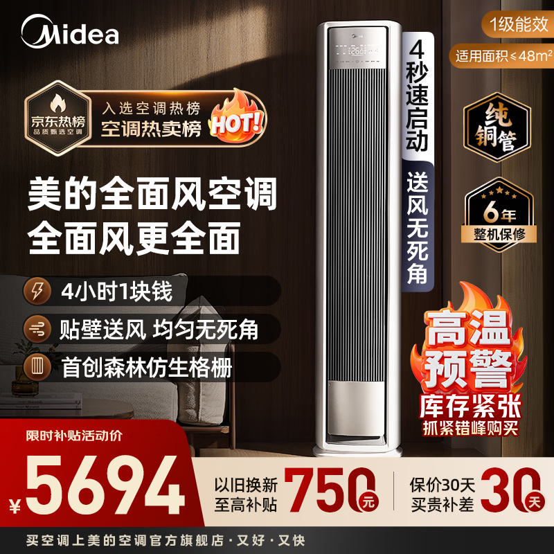 美的(Midea)空调全面风 风尊二代 家用客厅立式柜机 变频冷暖 新一级能效 国家补贴 美的官方旗舰店 全面风 3匹 100%覆盖客餐厅