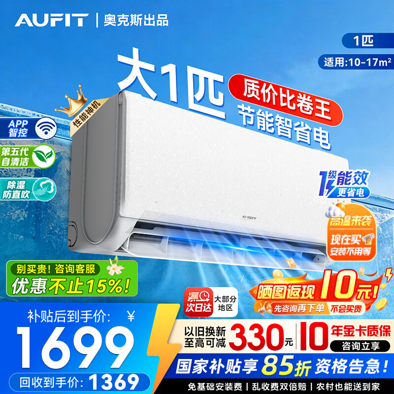 AUFIT空调奥克斯(AUX)出品空调挂机1.5匹/1匹/2匹家用新一级变频冷暖省电WIFI以旧换新国家补贴15% 特省电 MAX 大1匹 一级能效防直吹自清洁【智控款】