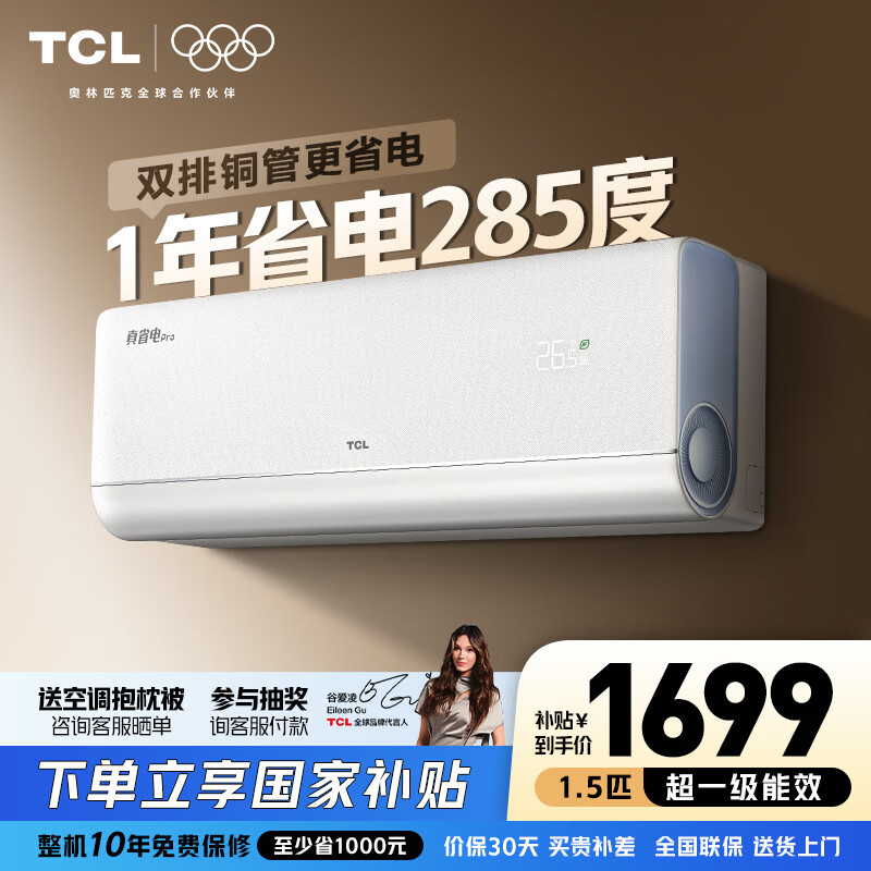 TCL空调 新品京东联名真省电Pro二代 1匹/大1.5匹/2匹新一级能效变频壁挂式卧室冷暖节能 真省电Pro二代 1.5匹