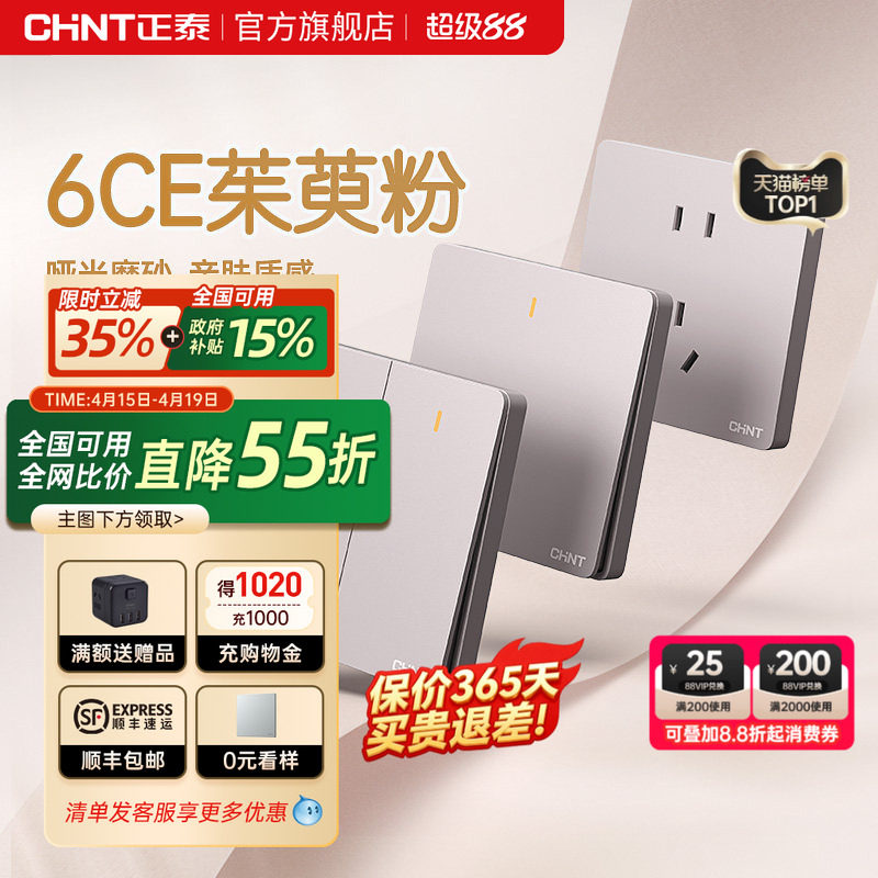 正泰官方旗舰店奶油风空调16A开关插座五孔10a面板暗哑光装6CE粉