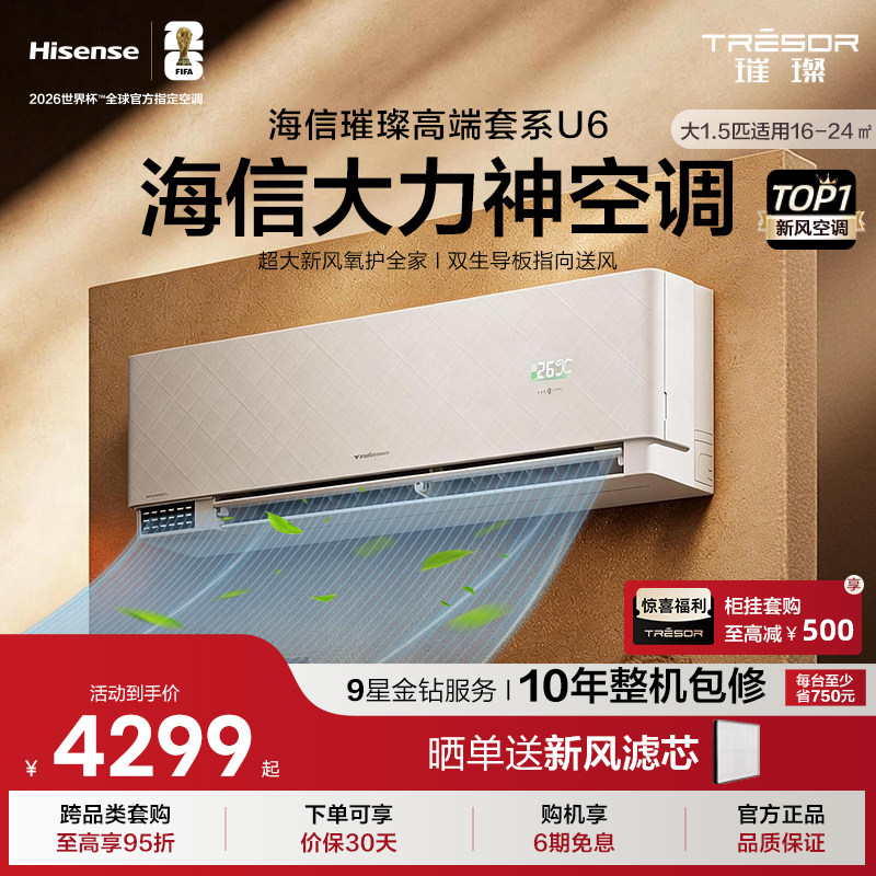 海信璀璨新风空调挂机1.5匹壁挂式家用AI语音智能变频空调35U6
