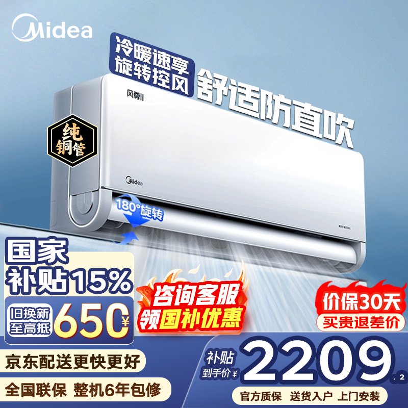 美的(Midea)空调挂机风尊二代Pro大1.5匹 新一级能效 变频节能冷暖两用壁挂式卧室空调防直吹APP智控 以旧换新 风尊二代 大1匹 舒适防直吹 180°控风