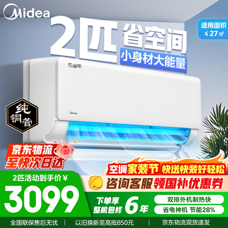 美的(Midea)空调2匹/3匹挂机酷省电二代 新一级能效变频冷暖家用卧室客厅壁挂式空调独立除湿国家补贴以旧换新 酷省电 2匹 省电28% 小客厅大卧室