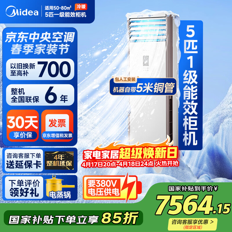 美的空调挂机智行2代3匹柜机一级能效家用变频官方正品政府补贴tk