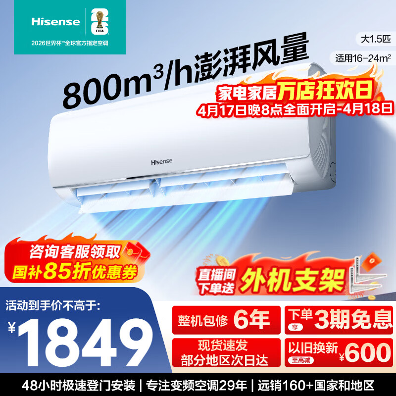 海信空调 大1.5匹/大1匹 易省电 AI省电 自然风大风量不直吹 一级能效空调挂机 能效补贴 大1.5匹一级能效【S+新秀款35E290】