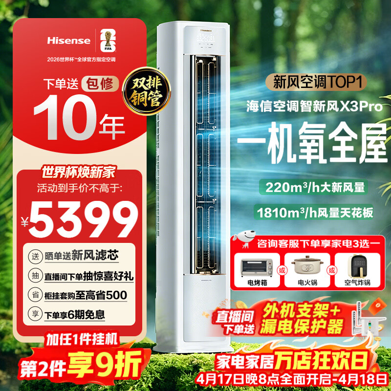 海信(Hisense)【咨询客服更优惠】新风空调X3Pro 大3匹 增氧新风 超大新风量 超一级能效 以旧换新 立式空调柜机 智新风 大3匹 一级能效72LW/X300Pro-X1