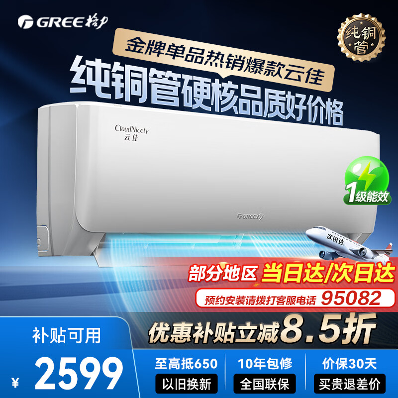 【Gree/格力官方】空调新一级能效大1匹智能变频挂机空调云欢Pro