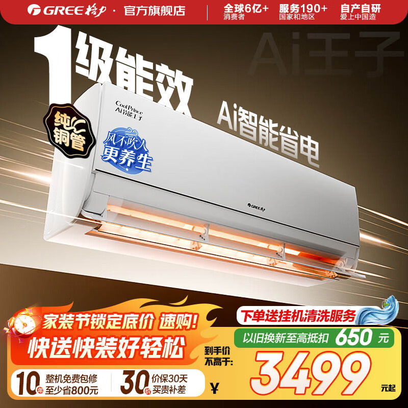 格力(GREE)空调 Ai节能王子 新1级能效 变频冷暖自清洁壁挂式卧室挂机 智能省电 风不吹人 国家补贴 以旧换新 AI节能王子 新一级能效 1.5匹